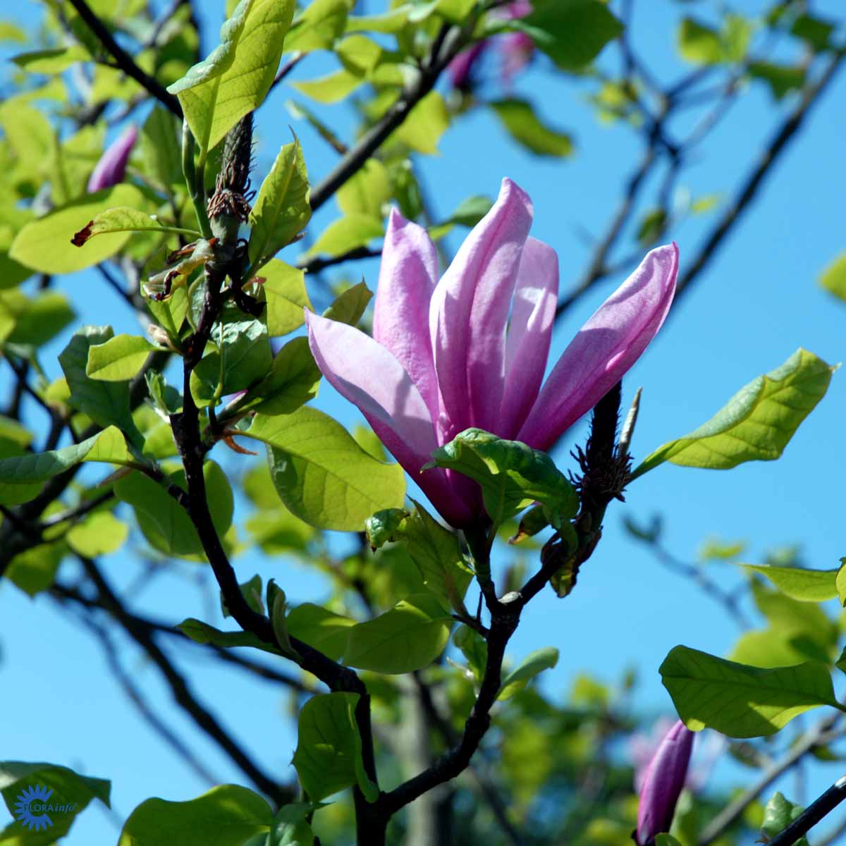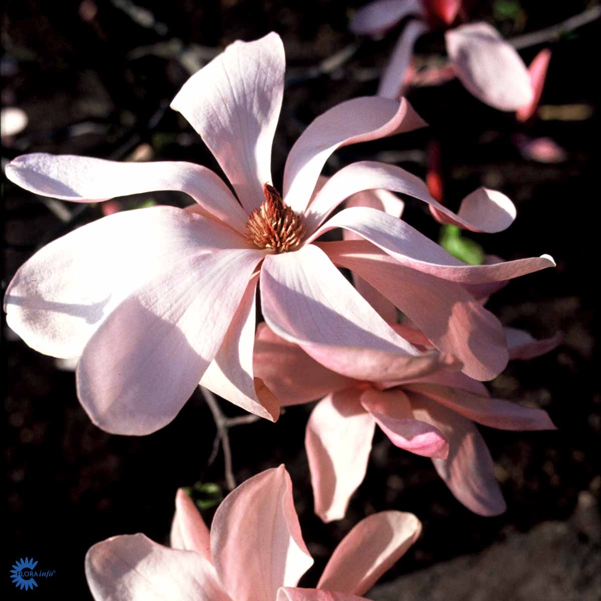 En opprettvoksende magnolia med store, stjerneformede, mørkrosa blomster. Den blomstrer tidlig på våren og gir en fantastisk visuell effekt i hagen. Bladene er grønne og ovale, mens høstfargene er gyldne. Trives i godt drenert jord og liker solrike til halvskyggefulle steder. Denne magnoliaen er ideell som solitærplante og krever minimalt vedlikehold utover formbeskjæring etter blomstring. Det anbefales å beskytte den mot sterk vind.