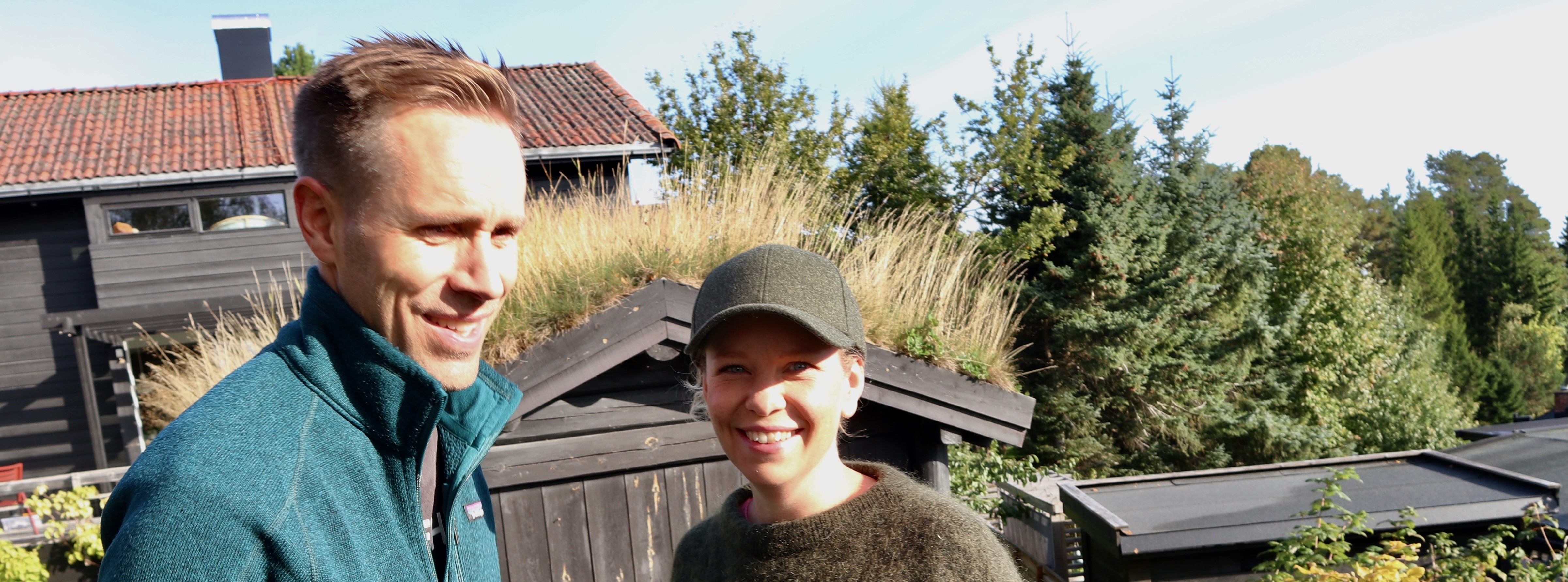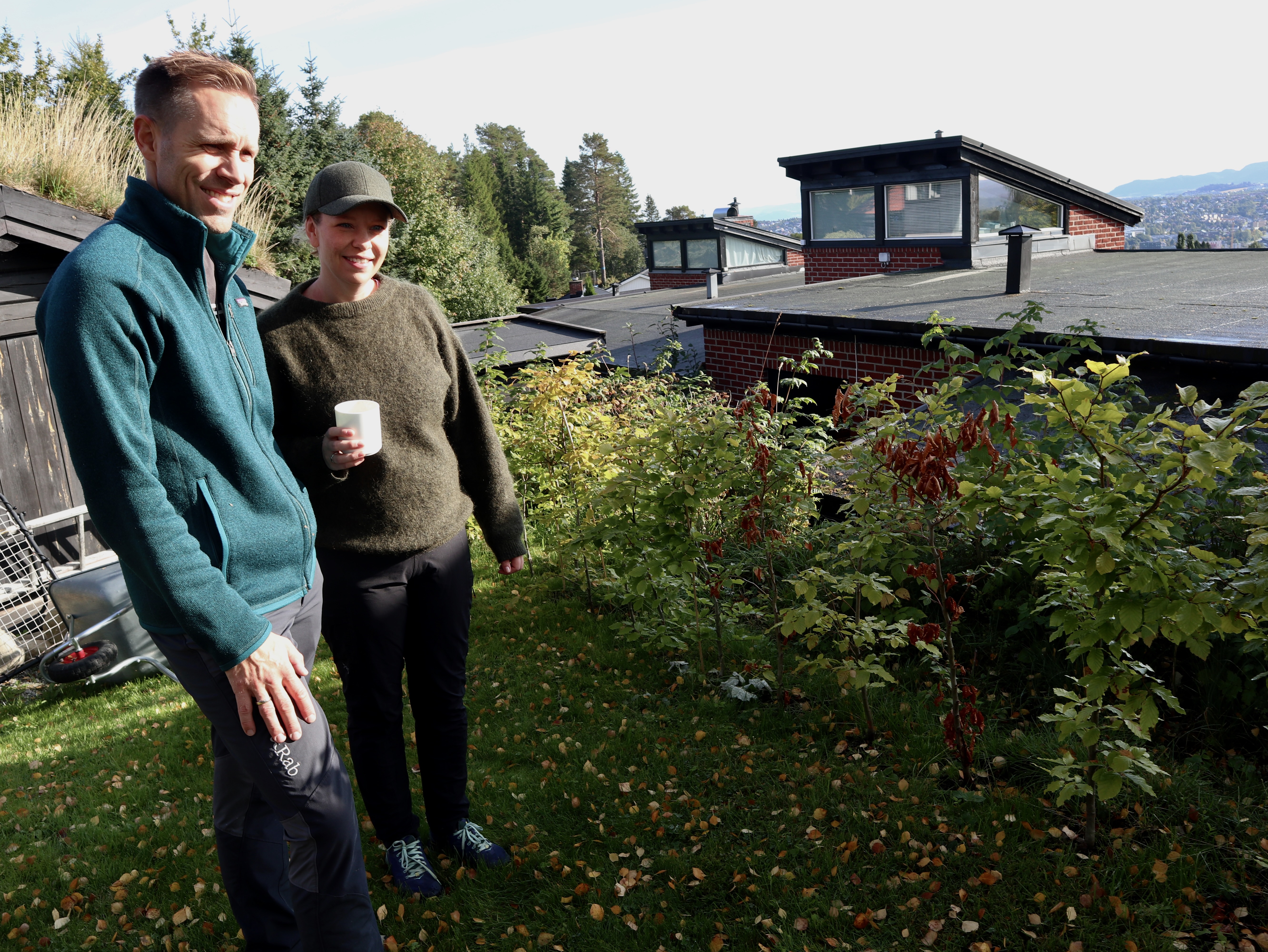 Vi rusler rundt i den store hagen på Øvre Byåsen i Trondheim, et notorisk snøhøl med langvarige vintre. Nå, en solrik septemberdag, skinner hagen grønn, og spesielt grønn er parets 60 meter lange bøkehekk.