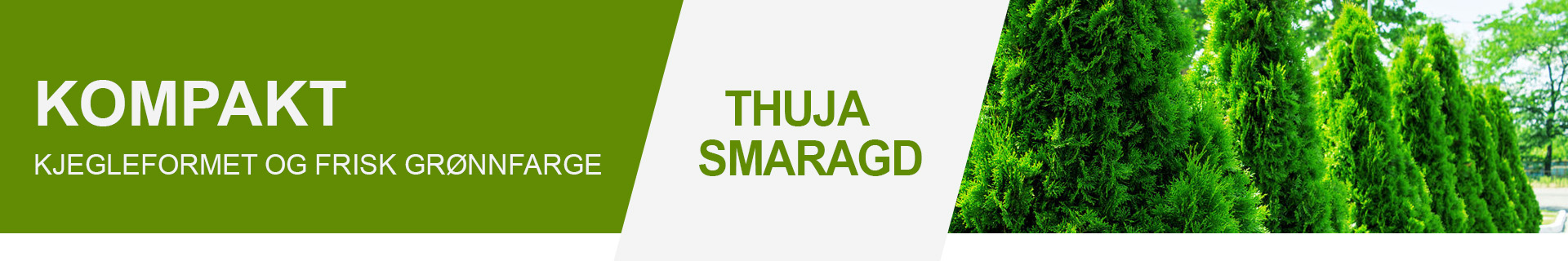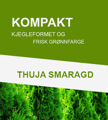 Thuja Smaragd er et kompakt, kjegleformet og saktevoksende bartre med en frisk grønnfarge. En vintergrønn plante som vokser 15–25 cm hvert år.