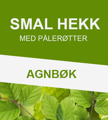 Agnbøk (Carpinus betulus) likner på vanlig bøk og brukes til klippede hekker, men bladene til Agnbøk er mer riflete enn vanlig bøk. Agnbøk tar relativt lite plass i bredden og hekkens røtter vokser mer nedover enn utover. Agnbøk er en robust og lite vedlikeholdskrevende hekkplante. Hekken forandrer utseende og gir liv i hagen hele året. Etter vinteren varsler friske grønne skudd at våren har kommet. Om sommeren pynter Agnbøkens knallgrønne blader opp i hagen, og om høsten lyser hekken opp med visne blader i høstfarger. Agnbøk trives best i sol eller delvis skygge og kan plantes i jord med sand- eller leirholdig tekstur. Den kan også trives i ren sand- og leirjord, så lenge du sikrer at hekken får nødvendig vann og næring. Dette er vanlige hekkplanter og passer for deg som har tid til å vente på at hekken blir tett. Plantene har en mer uregelmessig grenplassering og er mer åpne enn Prima Ferdighekk document.addEventListener('DOMContentLoaded', function() { var link = document.getElementById('dynamicLink'); var host = window.location.hostname; if (host === 'vestlandshekk.no') { link.href = 'https://vestlandshekk.no/Agnboek-Ferdighekk-125-cm/1002-D67B'; } else { link.href = 'https://www.hekkplanter.no/Agnboek-Prima-ferdighekk-125-cm/1002-D67B.10'; } }); . Vanlige hekkplanter er klippet og passet som våre øvrige kvalitetsplanter. Etter ca. 2 år, når plantene er ferdig utvokste, vil de ha forgreinet seg og blitt en tett hekk. Antall planter pr. meter: 3-4 Herdighetssone: H4